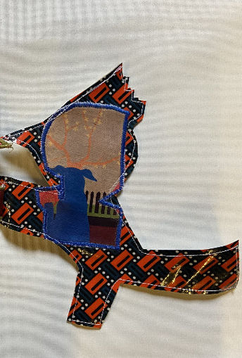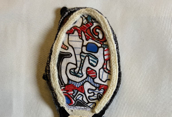 Polaire, tricotin et broderies main et machine. Chutes de coton appliqués, faux cuir, transfert sur tissus, sequins et vinyl.